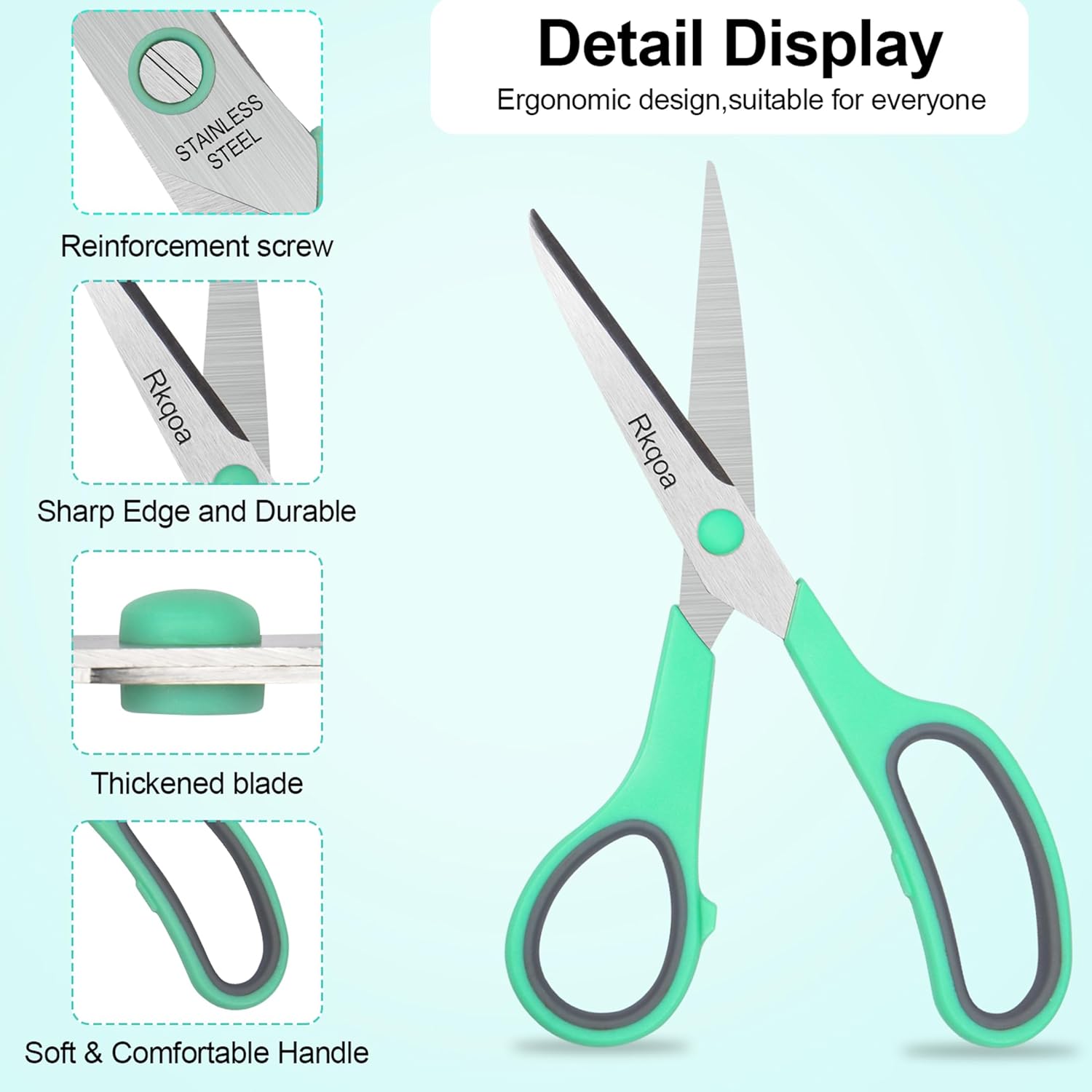 Scissors, Rkqoa 8" All Purpose Office Scissor 6 Pack - Comfort-Grip Sharp Shears for Office School House Sewing Fabric Crafts Arts Desk Classroom Supplies, Teacher/Class Scissors