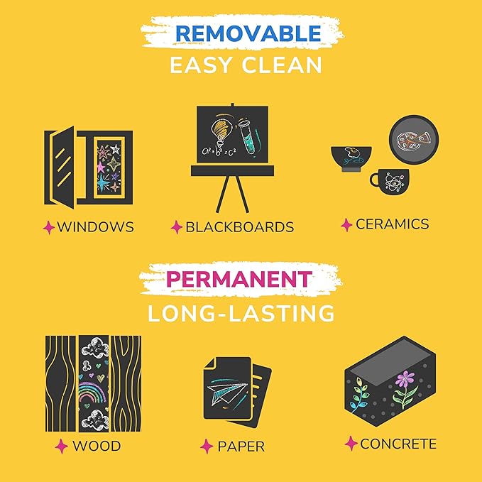 • Versatile Use: These erasable markers are not just for blackboards. They are perfect glass markers, window markers for glass washable, chalkboard paint markers, chalk dry erase, and chalk markers for windows. Unleash your creativity!