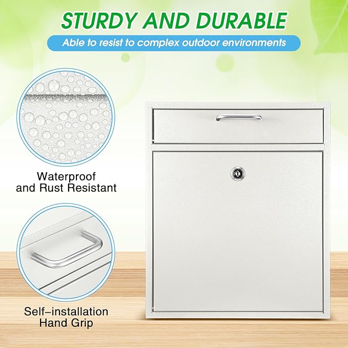 • Quality Material: crafted from quality metal material, this robust drop box promises durability; The wall mount mailbox is coated with creamy white plating which prevents peeling off paint and rust, extending the product's service life