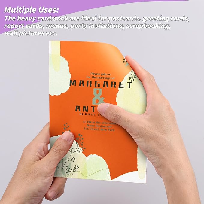 • Colors Construction Paper High Quality: This 4" x 6" in colored cardstock is 250gsm, suitable for most laser and inkjet printers, and we use virgin wood pulp to make it acid-free and very durable, vibrant colors saves the ink for printing background color. Our cardstock is FULLY DYED PAPER, without a white core, no matter you fold, tear or cut, there will be no white edges, making your work more beautiful