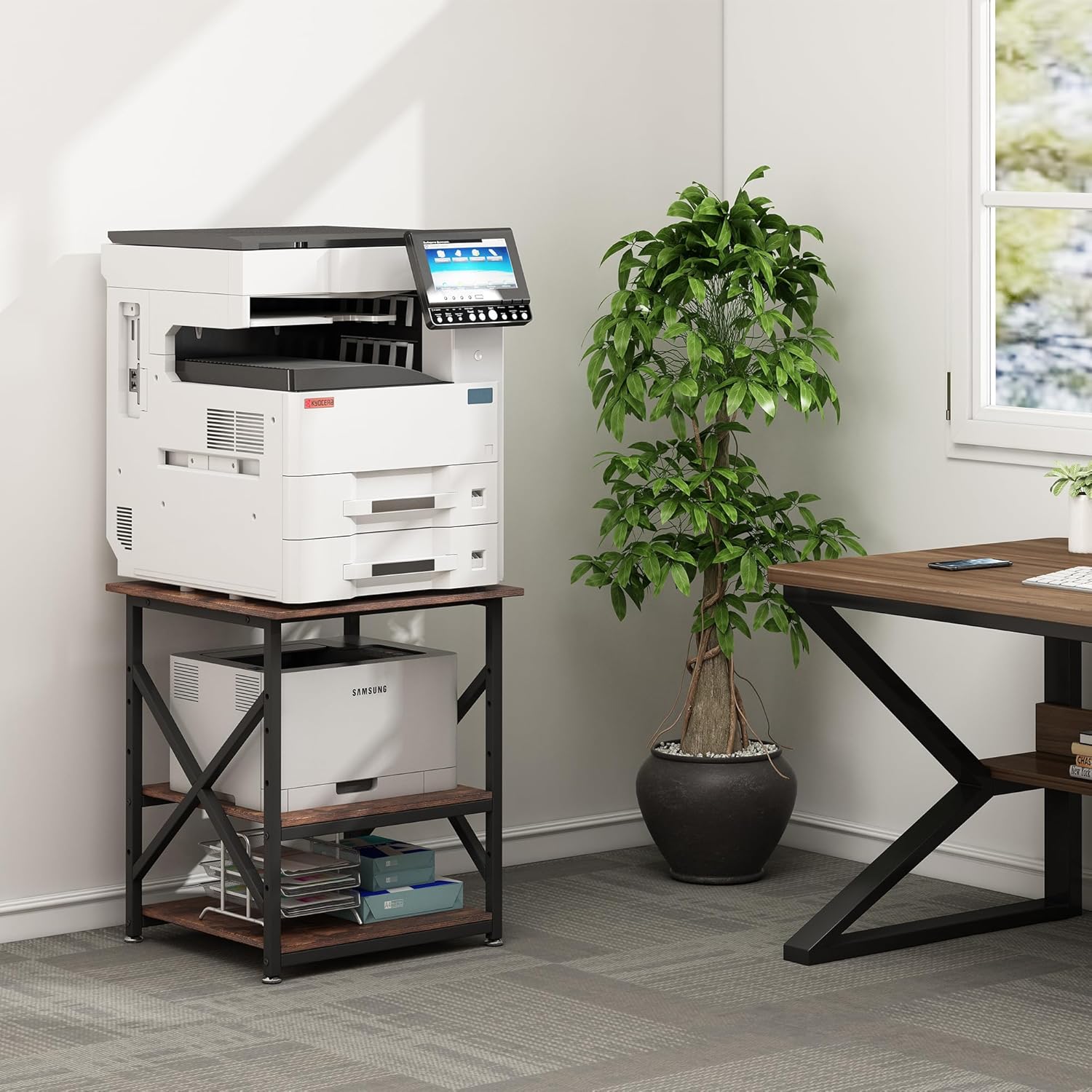 • 【Sturdy and Heavy Duty】Unlike some other designs in the market where shelves are merely screwed into the side frame, each shelf of this printer stand is bolstered by a sturdy steel tube underneath, ensuring a robust structure and impressive weight-bearing capability. Crafted with premium particle board featuring a water- and wear-resistant surface, and a reinforced 0.98 inch square steel tube frame—thicker than the standard 0.78 inch frame—this printer table stands as a reliable piece of furniture built to last for years.