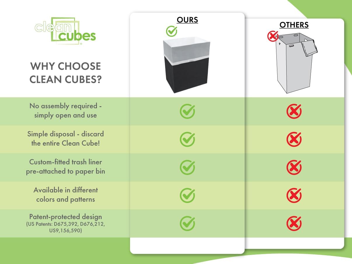 • ✅【EFFORTLESS CLEANUP & DISPOSAL】Simply unfold, use, and toss — keep your event clean and mess-free without extra effort. Clean Cubes are disposable recycling bins and trash cans with a patent-protected design and custom-fitted trash liner in each bin.
