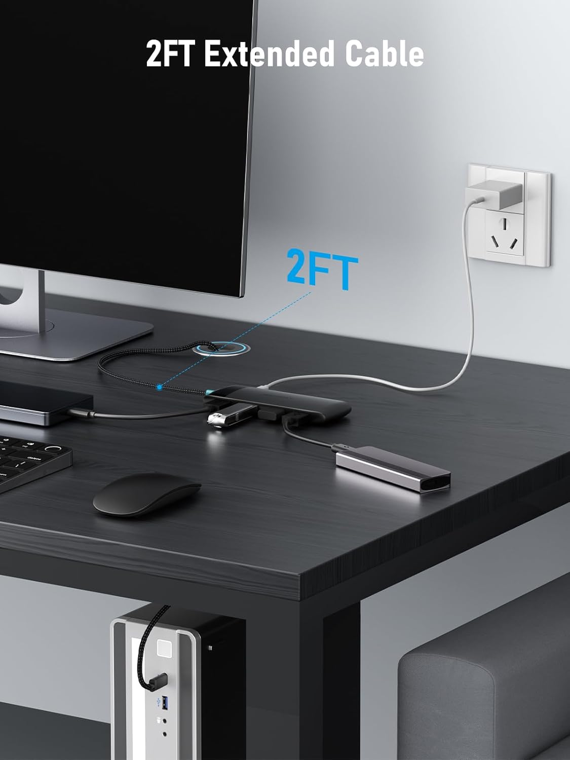 • [Stable and Secure]: This USB C Hub is adopting a stable and safe design, which ensures stable and secure data transmission. It provides over-voltage, over-current, and short-circuit protection that ensures no harm to your device. The power port supplies power when the USB hub is connected to SSD/HDD, Using this Power port for increasing the hub's output power will make data be stable.