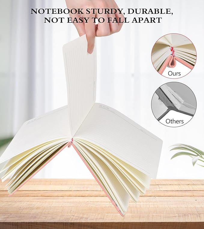 • 【180° LAY FLAT DESIGN & PREMIUM PAPER】: Lay the notebook completely flat for easy writing in any setting—whether at your desk, in a café, or on the go. The 200 pages of 100 GSM lined paper (7mm spacing) offer a smooth writing experience, ideal for journals, work notes, school assignments, or Bible study notes, with minimal ink bleeding or feathering.