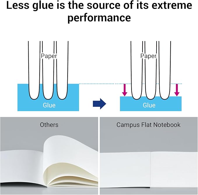 • [Durable Glue Binding] The glue-based spine solidifies the notebook, allowing it to lay-flat and preventing it from falling apart. This design makes it easy to write on every page and ensures a seamless reading experience. The functional cover provides space for writing titles and names. Easily identify and access the content you need.​