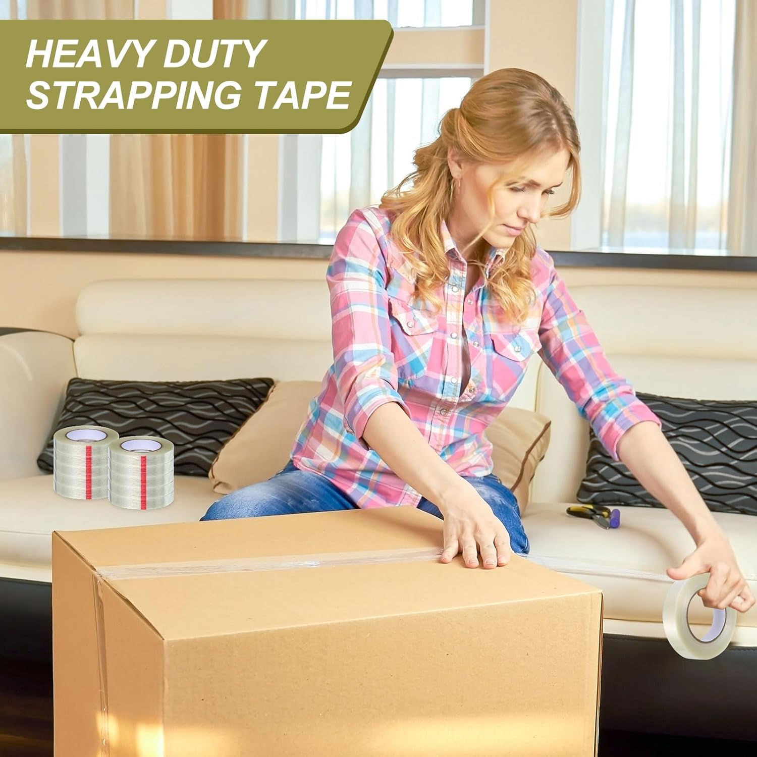 • Reinforced Strength: the strapping tape heavy duty features high tensile 5.5 mil thickness, tear resistant, which can not be torn by hand and need to be cut with knives or scissors, suitable sealing, binding and fixing