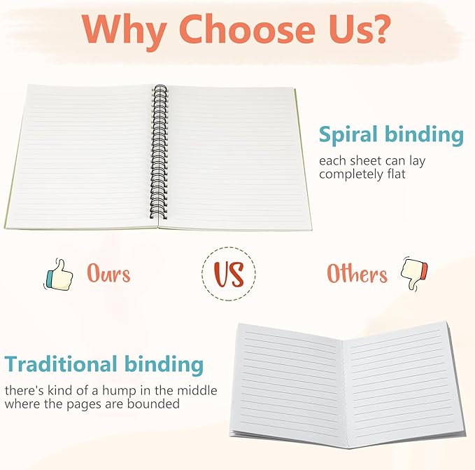 • Smooth to Write: each spiral journal notebook has 60 sheets (120 pages), and each page adopts quality 80gsm white paper, smooth and easy to write, preventing ink infiltrating into the next page, and mild colors can avoid eye fatigue and bring comfortable experience