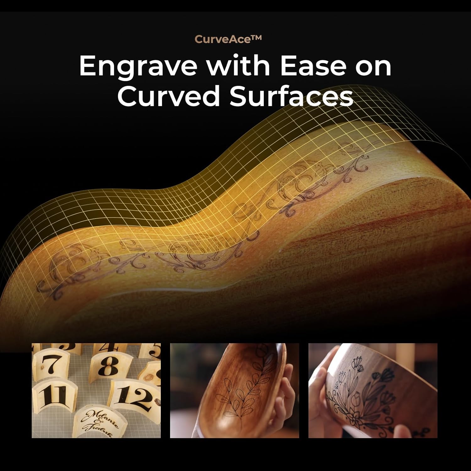 • Boundless Creativity: The 26"×14" large bed size and 2.7” maximum engraving height enrich you with even more possibilities for creations. If with the help of the Riser Base, you can easily engrave on 8.4" objects. Moreover, P2 is also Compatible with RA2 Pro rotary attachment to unleash your creativity on tumblers, mugs, spheres and rings.