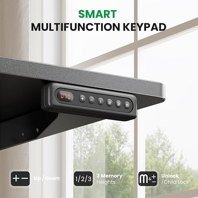 • Customized Sit Stand Desk : The reliable motor operates quietly (under 45 dB)and smoothly, all your things stay steady&secure in motion. The intuitive control panel allows you to preset 3 preferred heights, switch between sitting and standing positions has never been easier. Child lock for total peace of mind.