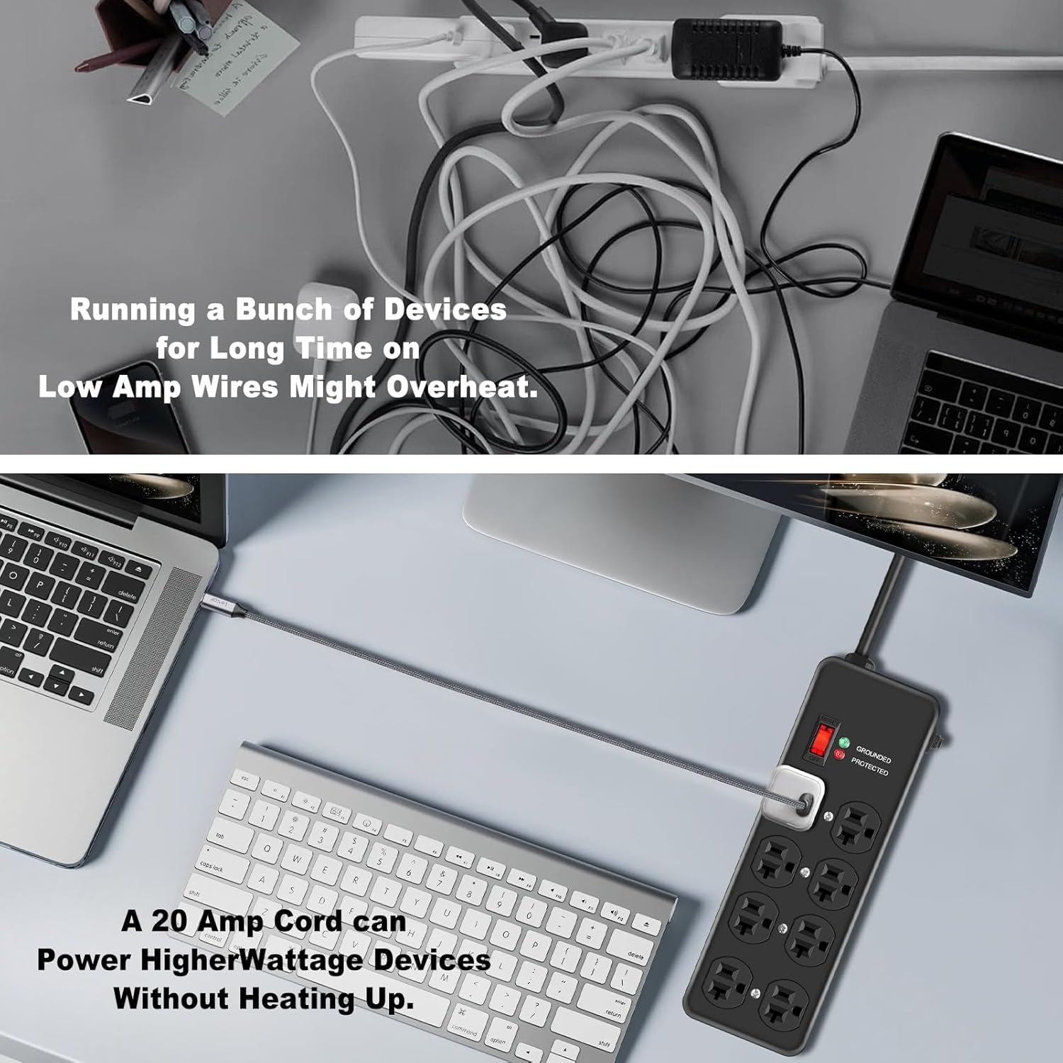 • 20 AMP POWER STRIP:Includes a 10FT 12AWG 5-15P heavy-duty extension cord, capable of supporting a 20A high current, with 8 6-20R T-Slot adapters & standard 3-prong 5-15P plug.