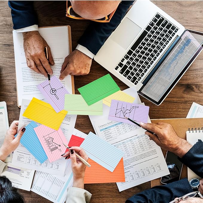 • Work Assistant: These color index cards are great for organizing work and meeting records. The 10 bright colors help you easily categorize and prioritize tasks, making it quicker to access and manage information