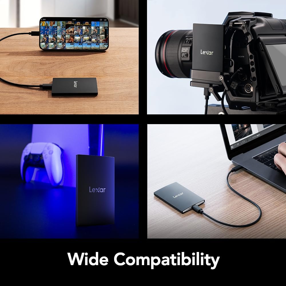Lexar 2TB SL500 Portable SSD, Up to 2000MB/s, Compatible w/Type-C Laptops, iPhone 15/16, Smartphones, Tablets, PS5, Xbox, USB 3.2 Gen 2x2, Slim & Lightweight, External SSD, Black (LSL500X002T-RNBNU)