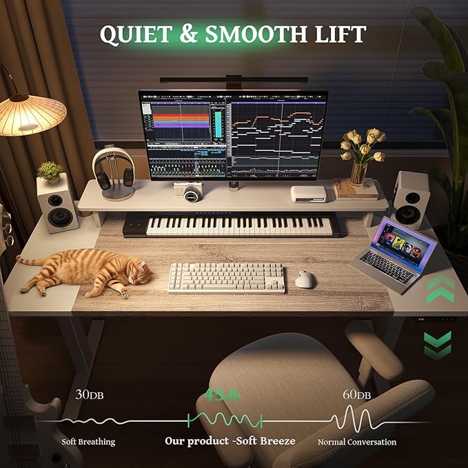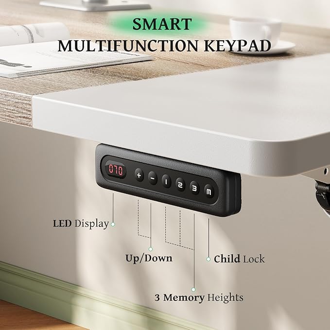 • Customized Sit Stand Desk : The reliable motor operates quietly (under 45 dB)and smoothly, all your things stay steady&secure in motion. The intuitive control panel allows you to preset 3 preferred heights, switch between sitting and standing positions has never been easier. Child lock for total peace of mind.