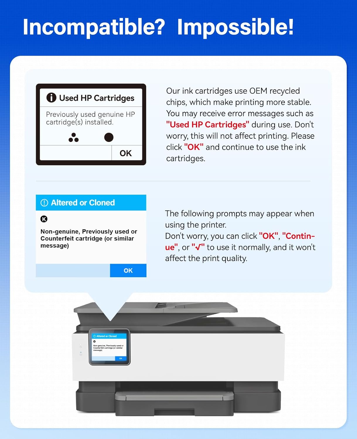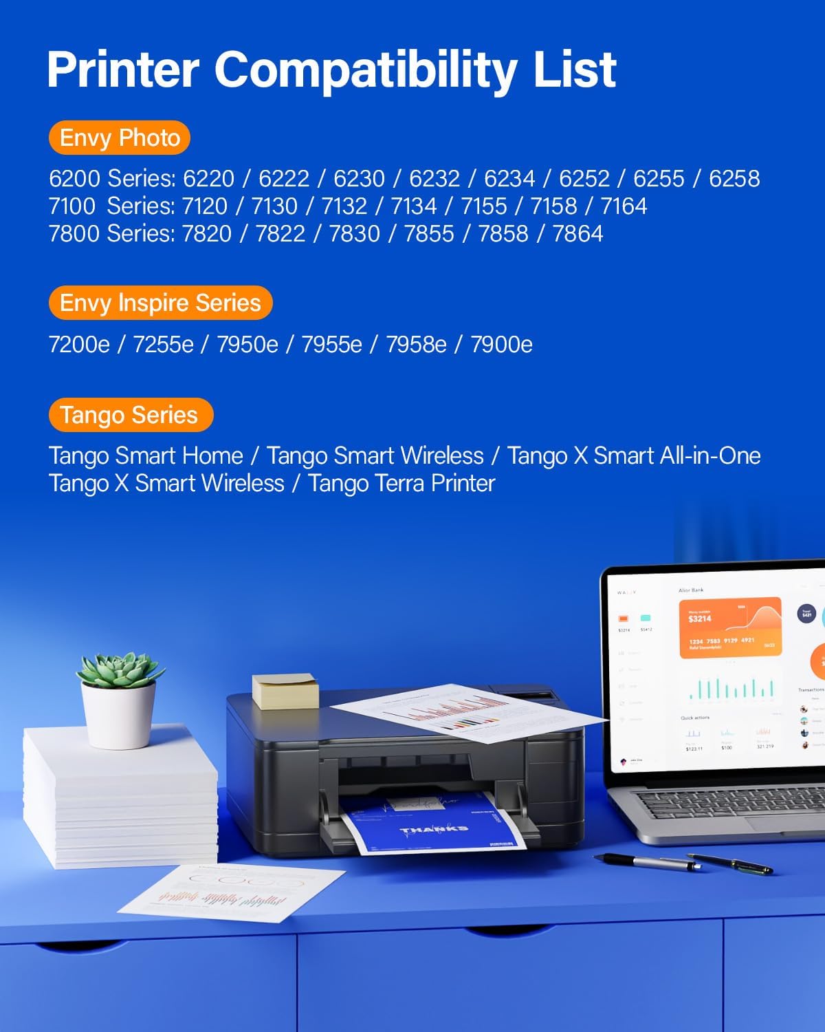 • Compatible Printer: Compatible for HP Envy Photo 7855 7858 7155 7158 7164 7120 7100 7800 6255 6252, ENVY Inspire Series: 7200e 7255e 7900e 7950e 7955e 7958e,Tango Series