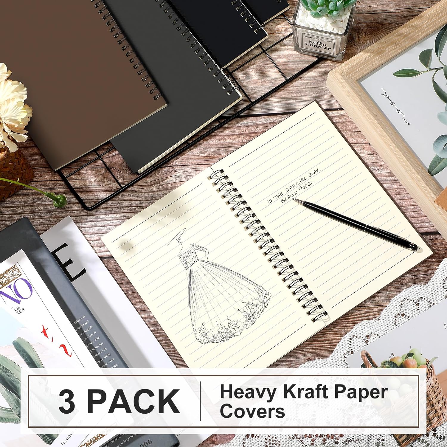 Yahenda Spiral Notebook Bulk A5 Journal Lined 8.3'' x 5.5'' Writing Composition Paper Small Notepad Subject Notebook for Students Office Business Back to School Supplies(Dark Color,3 Pcs)