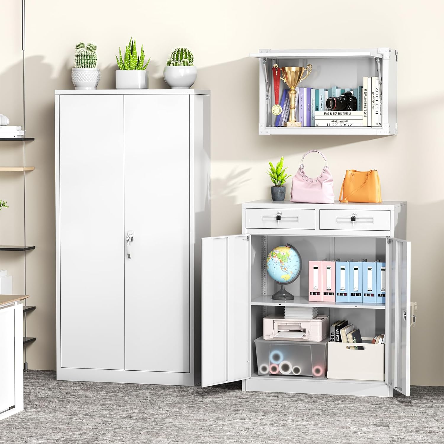 • [𝗖𝗨𝗦𝗧𝗢𝗠𝗘𝗥 𝗦𝗘𝗥𝗩𝗜𝗖𝗘] -- We collaborate with multiple courier companies to deliver products to you with more professional and fast services. Metal storage cabinets have been chosen by thousands of users. Before assembling, double-checked all parts of cabinet you received, and the installation instruction is included in the box.