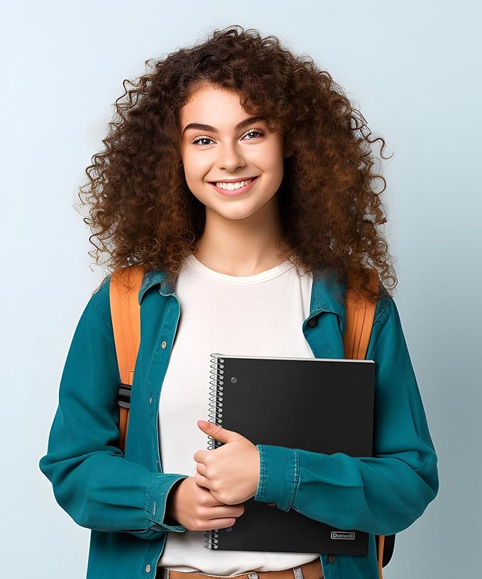 • Black College Ruled Spiral Notebook 8.5 x 11: Plastic cover, Resists moisture, Protects your valuable class notes, assignments. Color-code your school courses with 1 subject notebooks for college.