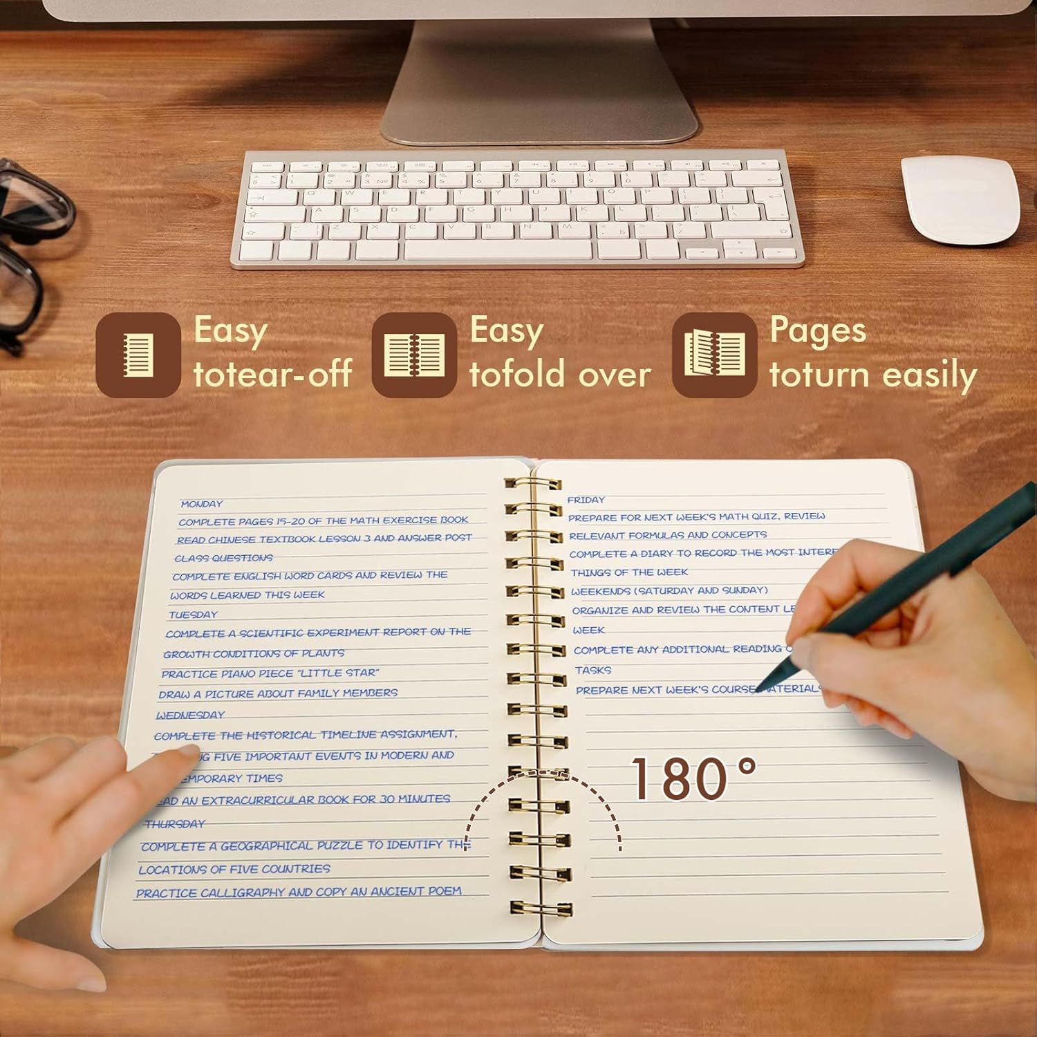 • Durable and Elegant Design: The Oneirom Spiral Notebook features a premium PU leather cover, twin-wire binding provides a sturdy construction, allowing the notebook to lay flat for easy writing. The water-resistant cover protects your notes from spills and damage, making it a reliable choice for daily use