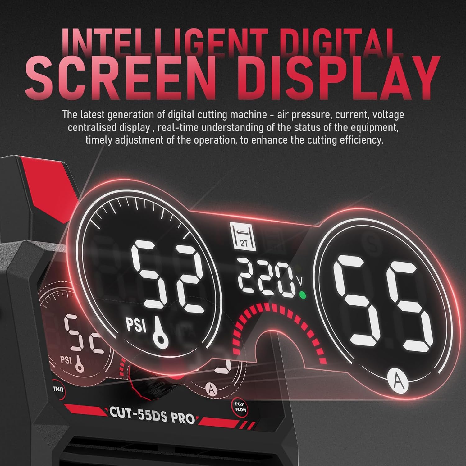 • POWERFUL CUTTING CAPACITY: : Featuring a substantial 55A high current for maximum power, it delivers deeper cutting thickness. CLEAN CUT: 1/3''@110V 1/2''@220V // MAX CUT: 1/2''@110V 4/5''@220V. Powered by international leading MCU intelligent digital control technology, it ensures deep, precise, and clean results every time.