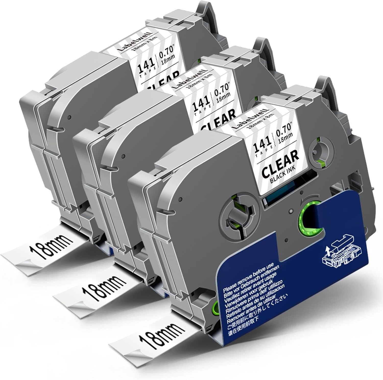 18mm 0.7 Laminated Black on Clear Compatible with P Touch Label Tape TZ TZe-141 TZe141 Refills for Ptouch PT-D410 PT-D400 PT-D600 Label Maker, 3/4 Inch x 26.2 Feet, 3-Pack