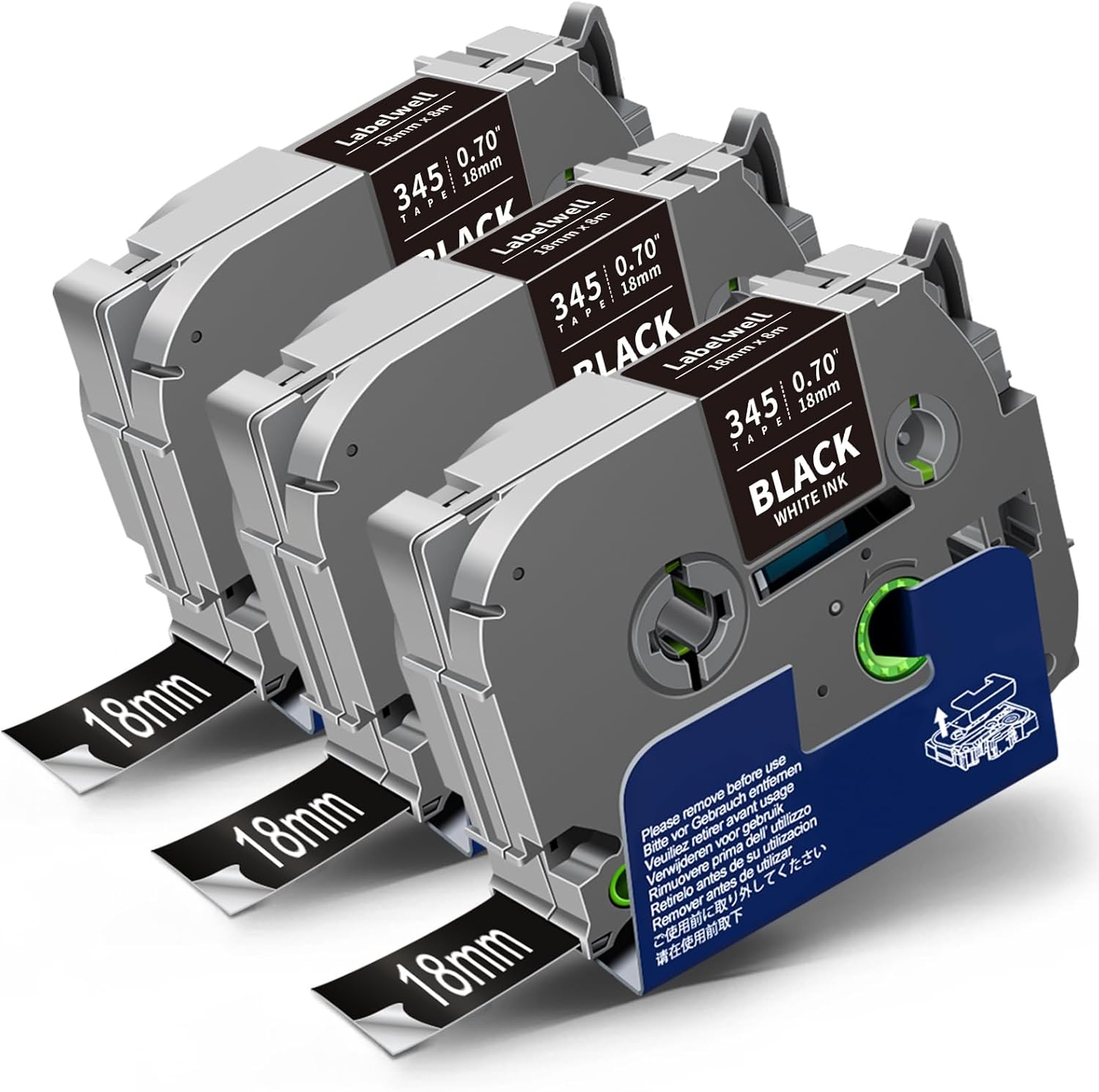 18mm 0.7" Laminated White on Black Compatible with P Touch Label Tape TZe-345 TZ345 TZe345 for Ptouch PT-D410 PT-D400 PT-D600 Label Maker, 3/4 Inch x 26.2 Feet, 3-Pack