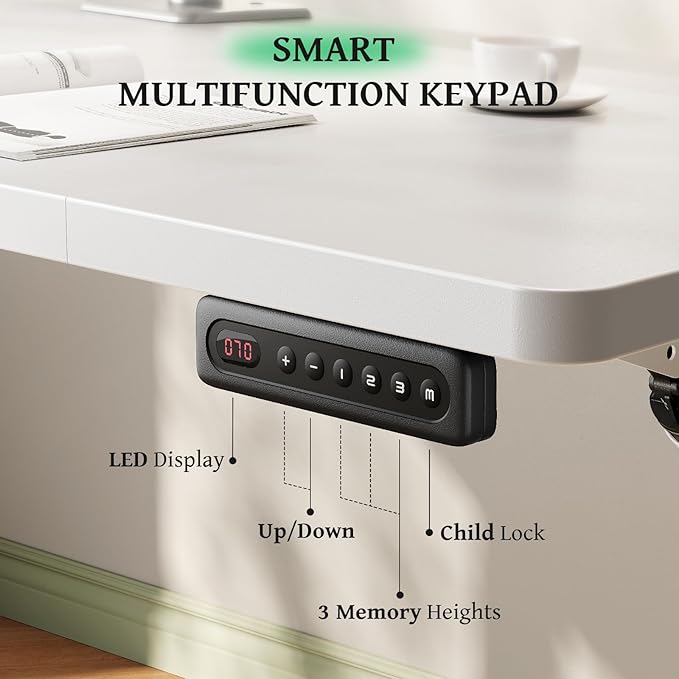• Customized Sit Stand Desk : The reliable motor operates quietly (under 45 dB)and smoothly, all your things stay steady&secure in motion. The intuitive control panel allows you to preset 3 preferred heights, switch between sitting and standing positions has never been easier. Child lock for total peace of mind.