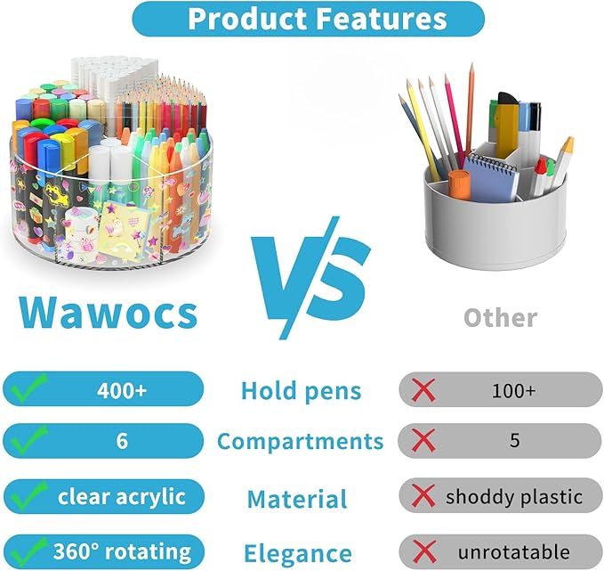 • Wawocs Clear Pen Holder: Rotating Acrylic Teacher Desk Organizer Art Supply Storage Organizer Kids Storage Organizer Desk Pen Holder Pencil Holder for Kids Dorm Desk Organizer Color Pencil Organizer Marker Storage Organizer Student Desk Organizer Storage Organizer for Bedroom Pencil Holder for Classroom Make Up Brush Holder Organizer Brush Holder Makeup Organizer Acrylic Organizers Makeup Make Up Storage Organizer Acrylic Makeup Brush Holder Vanity Storage Organizer Dresser Storage Organizer