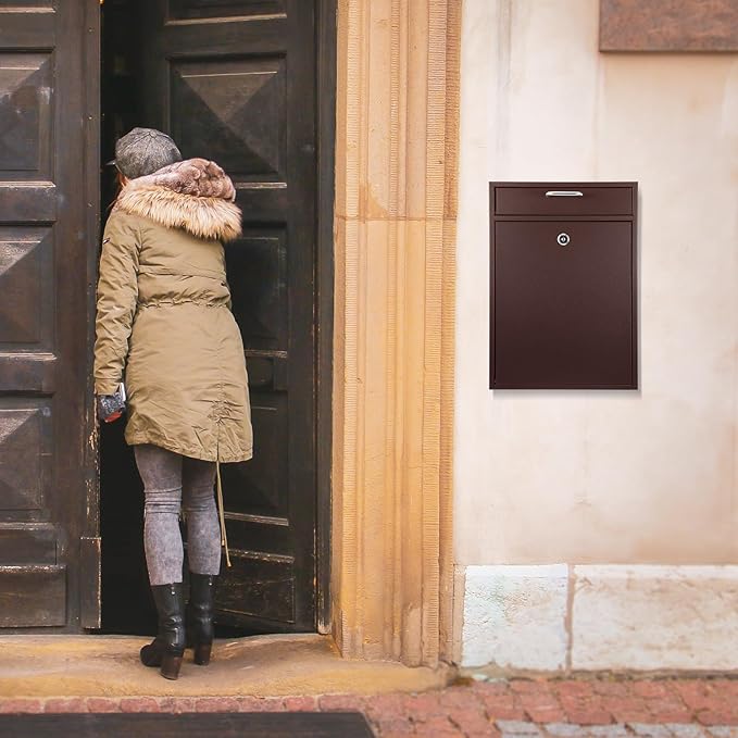 • Quality Material: crafted from quality metal material, this robust drop box promises durability; The wall mount mailbox is coated with brown plating which prevents peeling off paint and rust, extending the product's service life