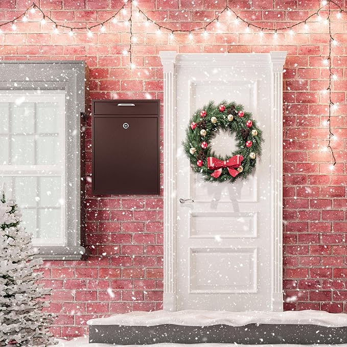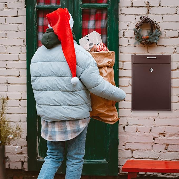 Locking Mailbox with Key for Outdoor 16.2 x 11.2 x 4.7 Inches Large Wall Mount Mail Box with Lock Security Mail Drop Metal Collection Boxes Hanging Secure Postbox(Brown)