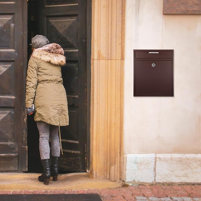 • Quality Material: crafted from quality metal material, this robust drop box promises durability; The wall mount mailbox is coated with brown plating which prevents peeling off paint and rust, extending the product's service life