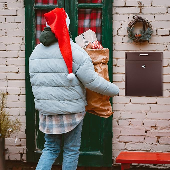 Locking Mailbox with Key for Outdoor 12 x 10.5 x 4.7 Inches Large Wall Mount Mail Box with Lock Security Mail Drop Metal Collection Boxes Hanging Secure Postbox(Brown)