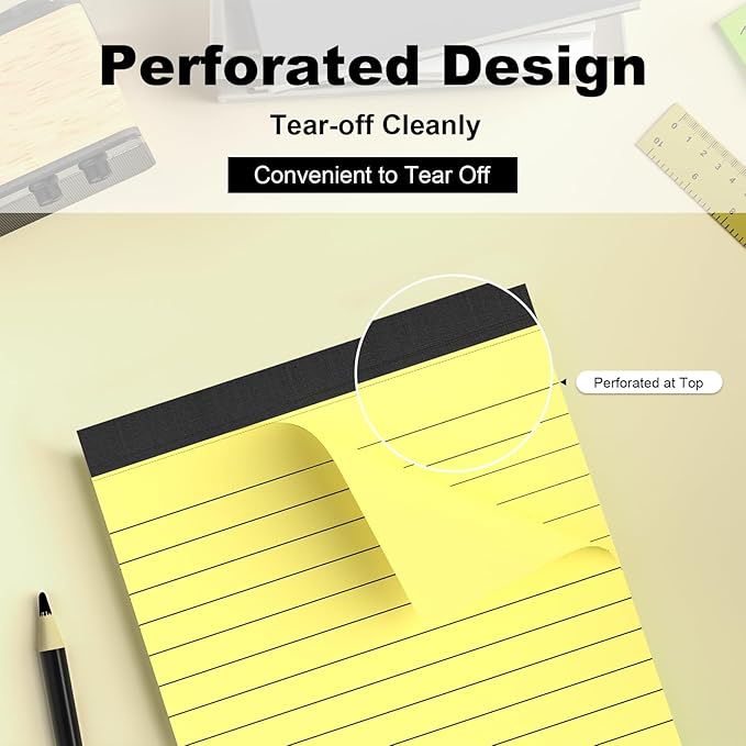 • [Package Contain] Each package contains 6 pack of small notepads measuring 4x6 inch. The paper is college ruled with 9/32 inch lined spacing. These yellow legal note pads are ideal for jotting down notes, memo and lists. The package provides sufficient quantity to meet your daily usage and replacement needs, so you don't have to worry about running out of paper. The writing pad is perfect for recording all your things, ensuring that nothing is forgotten.