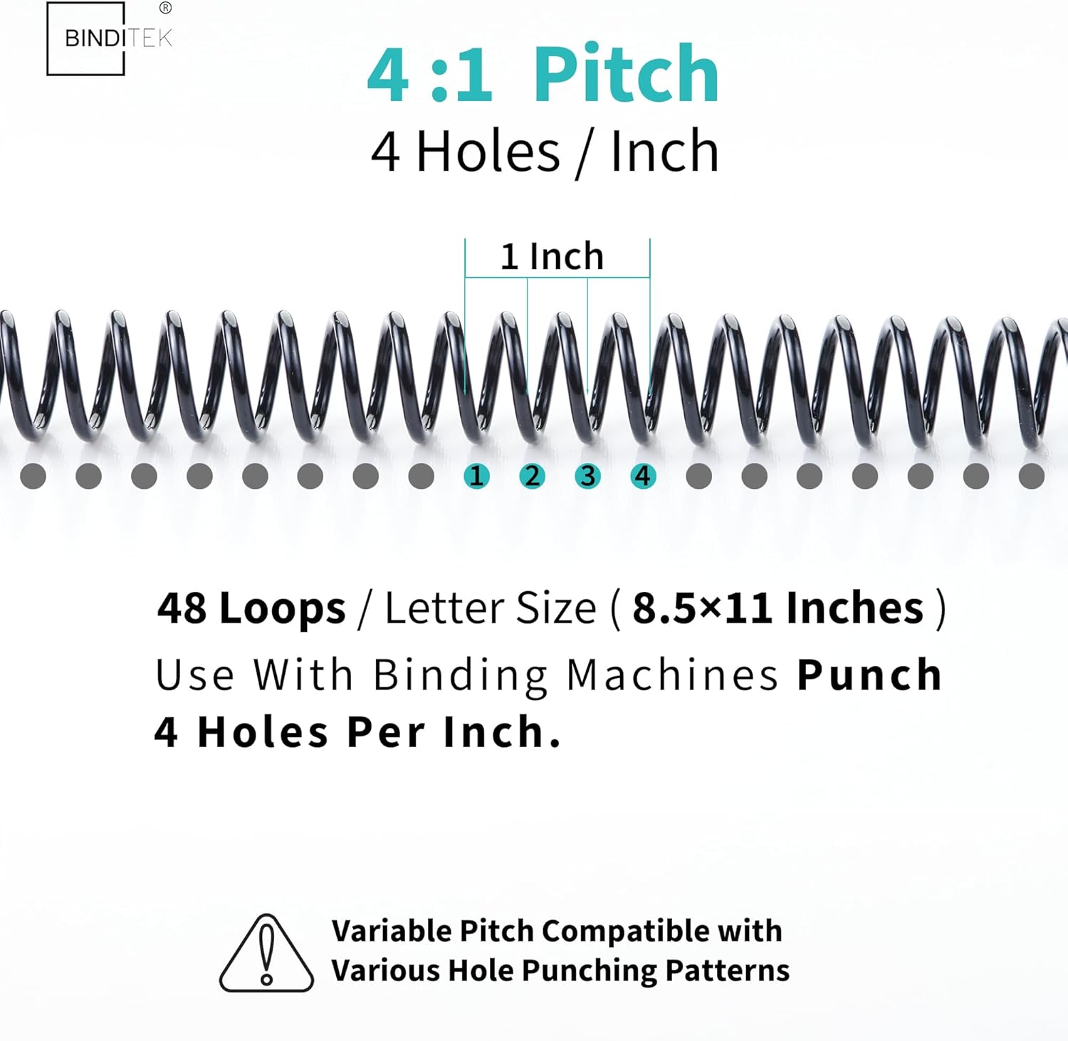 • 【4:1 Pitch & 48 Loops】Spiral binding coils have a 4:1 pitch, making them compatible with any binding machine that punches 4 holes per inch. (Attention: These 4:1 pitch binding coils are not compatible with the Cinch machine.)