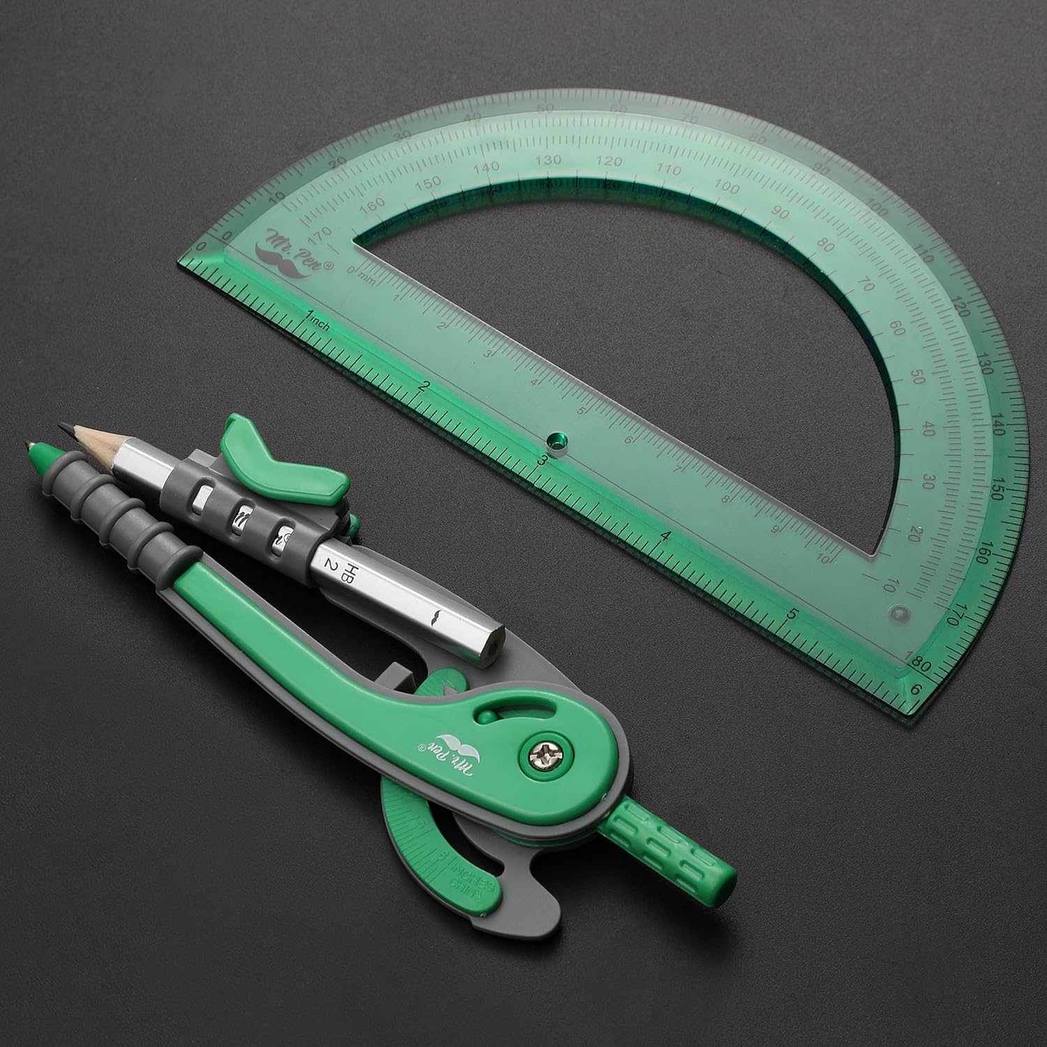 Mr. Pen- Compass and Protractor Set, Lush Garden Green, Compass Geometry Tool, Protractor and Compass Set, Compass Drawing Tool, Drawing Compass, Geometry Compass, Math Compass for Geometry