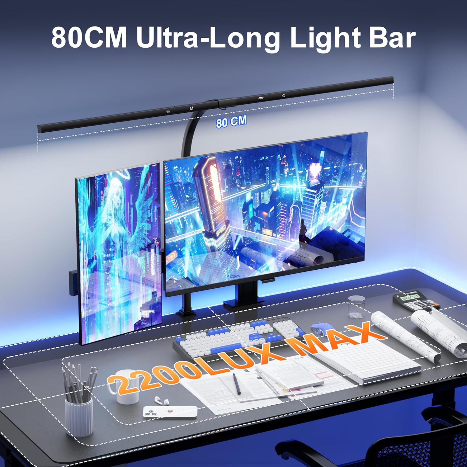 • 【Ultra-Wide & Super Bright Illumination】24W 80cm super wide LED desk light bar, Large light-emitting area for full desk coverage. Ideal for studio, office, monitor, drawing, sewing, crafting, painting, and reading.