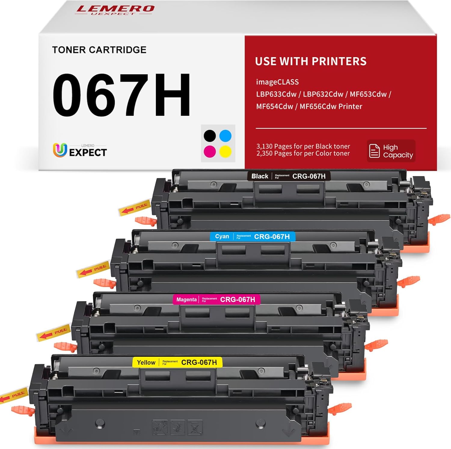 LEMERO UEXPECT 067H High Yield Toner Cartirdge Set Compatible Canon 067H 067 Toner for Color ImageClass MF656Cdw MF654Cdw LBP633Cdw LBP632Cdw MF653Cdw Printer Ink, 4 Pack