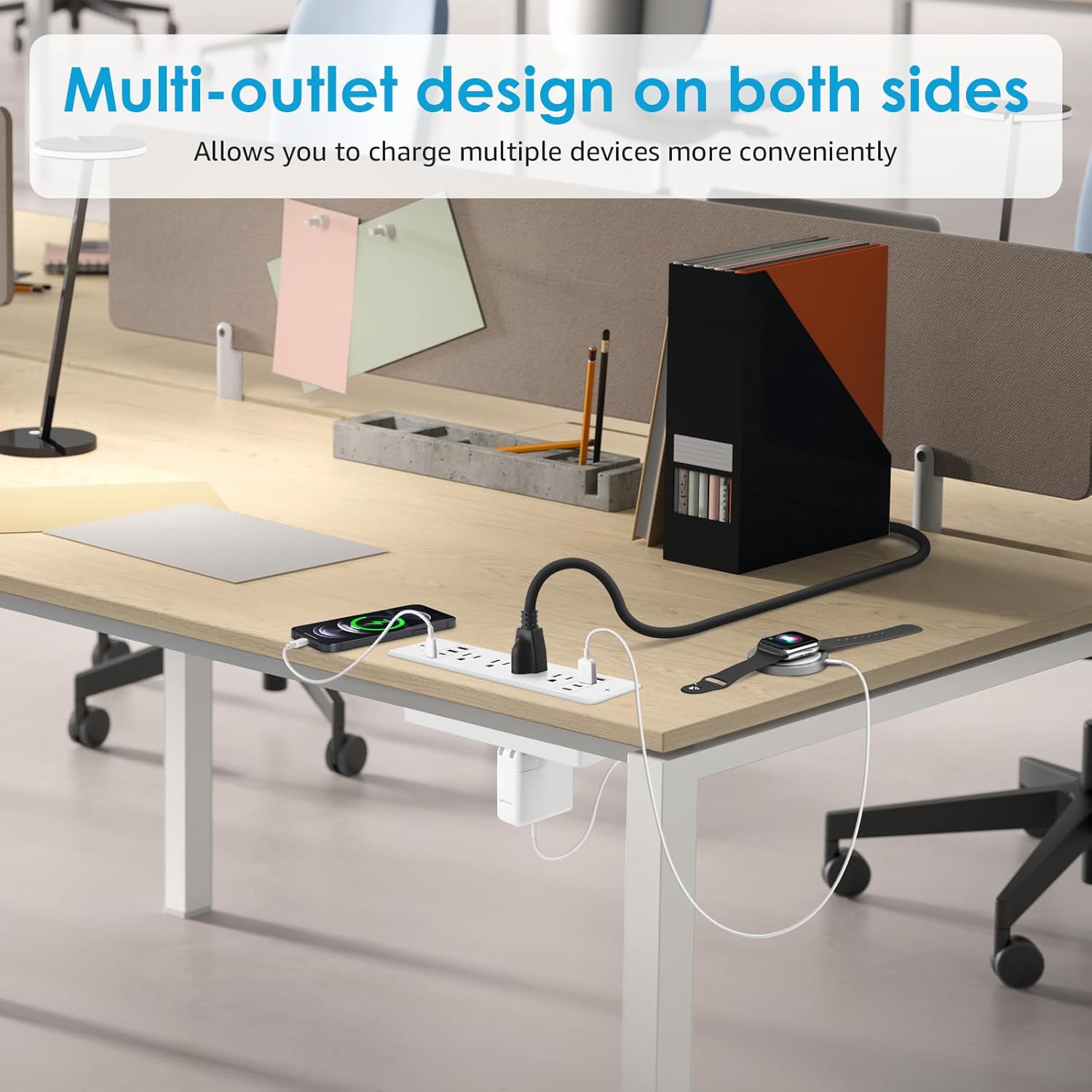 • Recessed Surge Protection with Flat Plug: With 1200 Joules surge protection, the power outlet withstands spikes and fluctuations, protecting your electronics and home power from lightning and power surges. It has all the power a person would reasonably need at their desk or work station, create less clutter and have a more organized desk area, in use and that it is not taking up floor space or counter space.