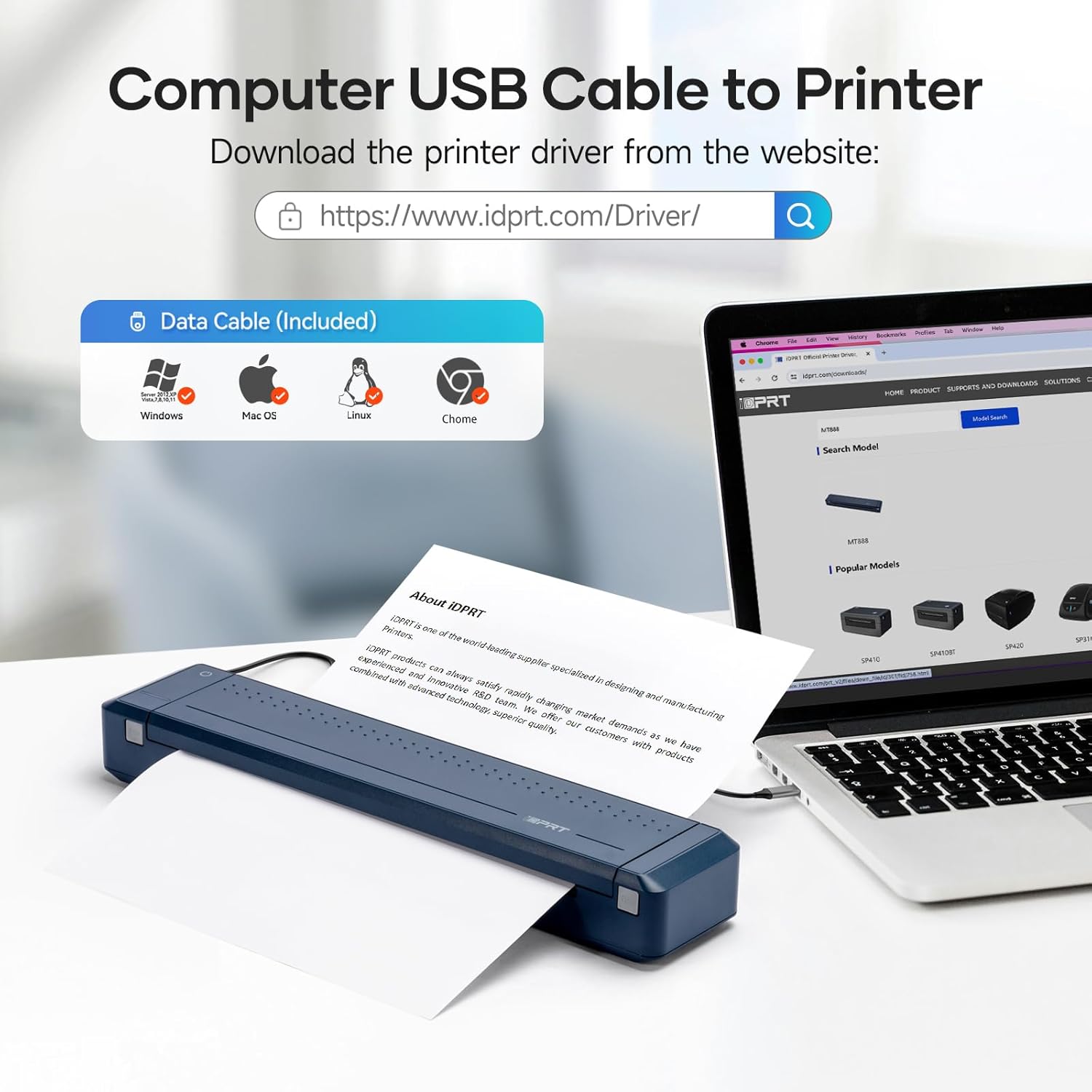 • 【FREE APP IS POWERFUl】iDPRT MT888 printer supports computer and mobile phone connection. The phone supports iOS and Android systems: 1.You need to turn on Bluetooth in iphone's setting. 2. Download the "HerePrint" APP. 3.Connect printer in the "HerePrint" APP. The "HerePrint" APP is free, it can provide a wealth of functions, allowing you to get a more creative printing experience.
