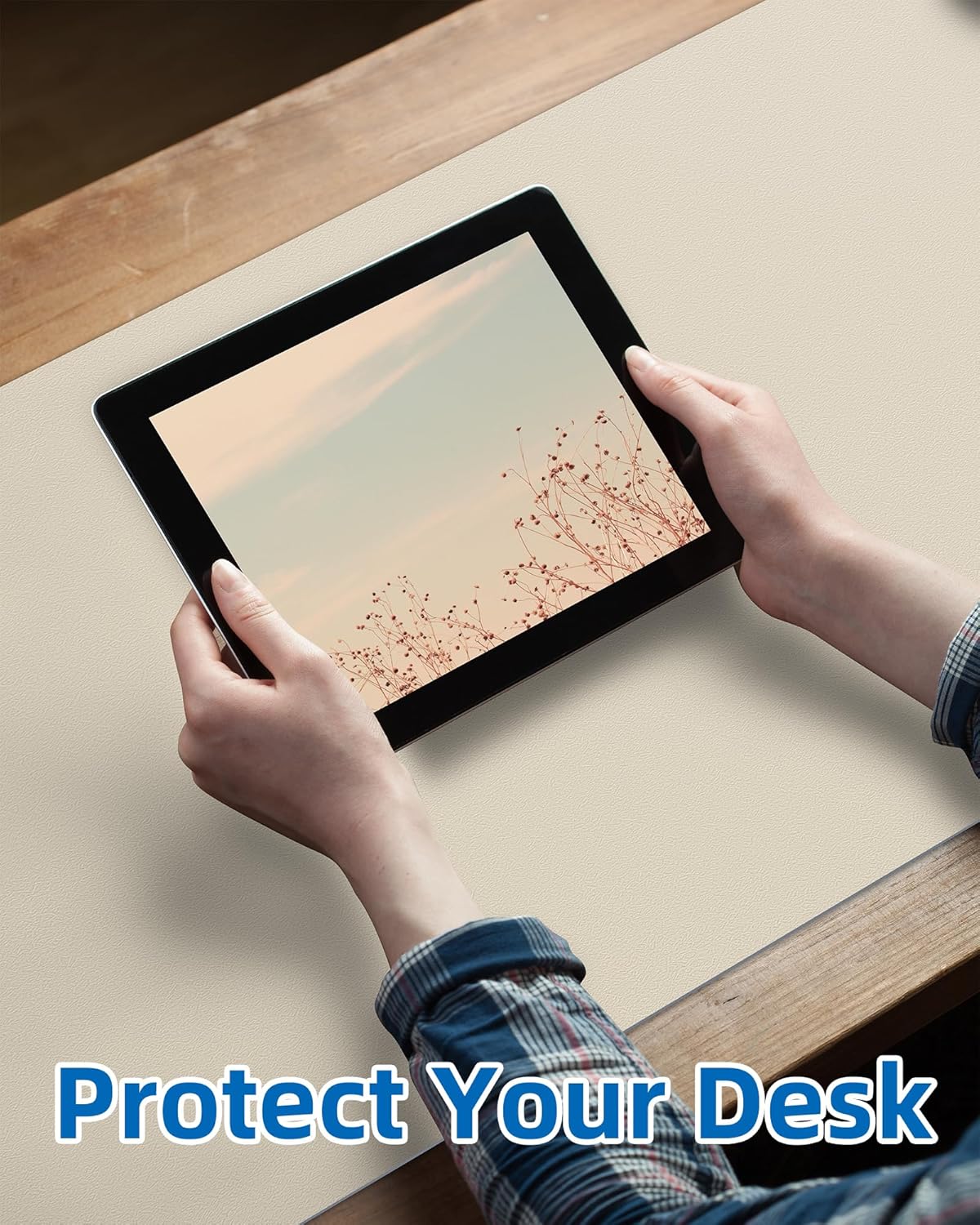 AFIING Leather Desk Pad Protector,Mouse Pad,Office Desk Mat, Non-Slip PU Leather Desk Blotter,Large Desk mat,Waterproof Keyboard mat for Office/Home/Decor (Beige,35"" x 17"")