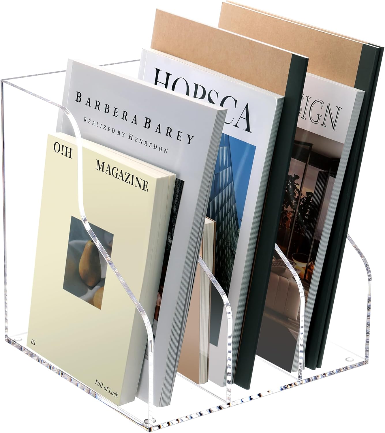 • [Transparent Design Desktop Organizer] Our Clear Magazine File Holder features 3 compartments, the width of the slots of the file folder holder stand is 2.95 inches. Clear Acrylic Desk File Sorter make it easy to categorise your storage space and identify the contents of each section at a glance.