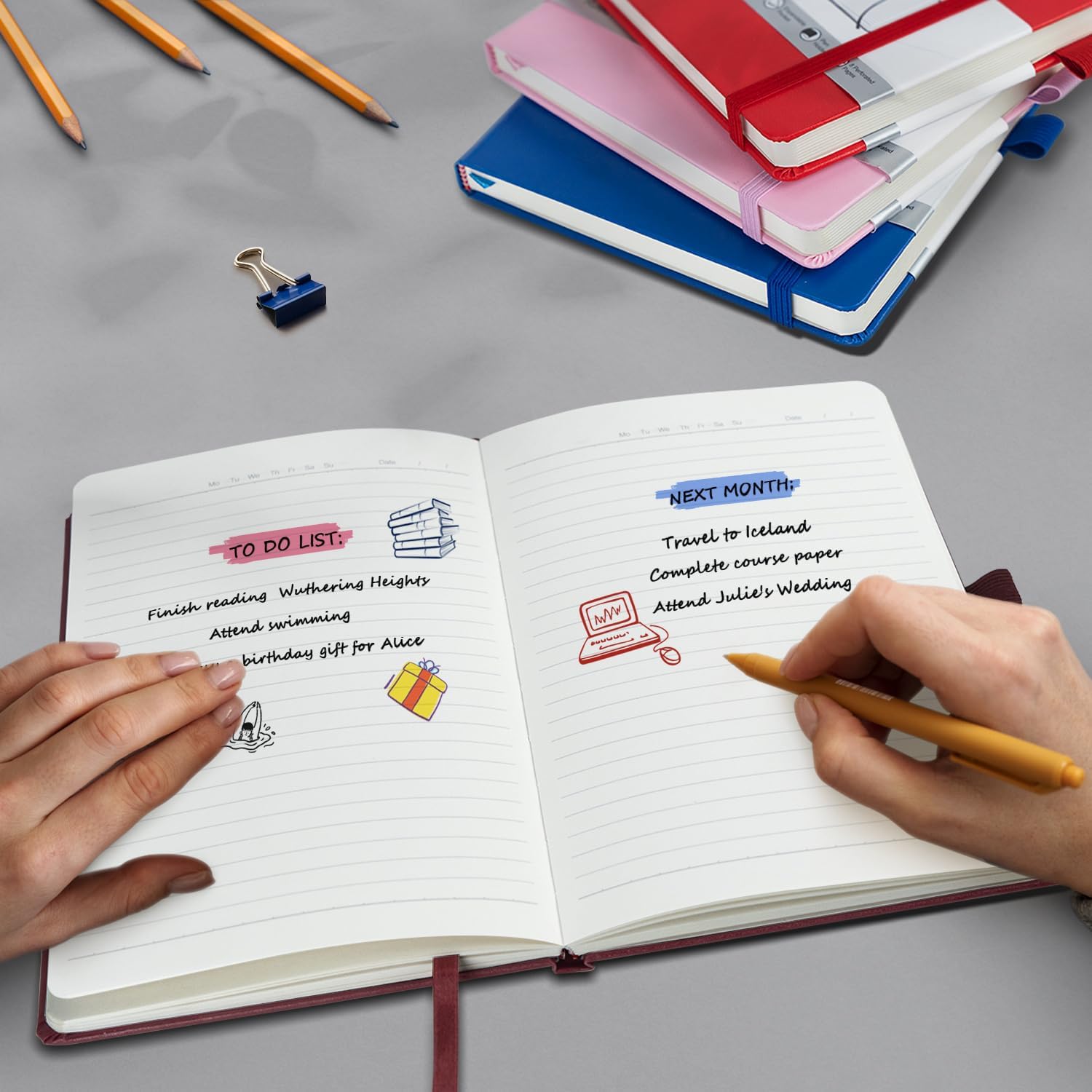 • 【Rainbow Colourful Multipack】 ONAVIA A5 hardcover executive notebooks has 8 colors - Black, Baby Pink, Purple, Red, Claret, Klein Blue, Light Blue, Turquiose. These notebooks for writing fit for note taking, life scheduling, journaling, teaching and studying. Great journal notebook for school, home,office, work, college and travel. Get ready for back to school with our 8 pack of lined journal notebooks, offering ample space for all your note-taking needs