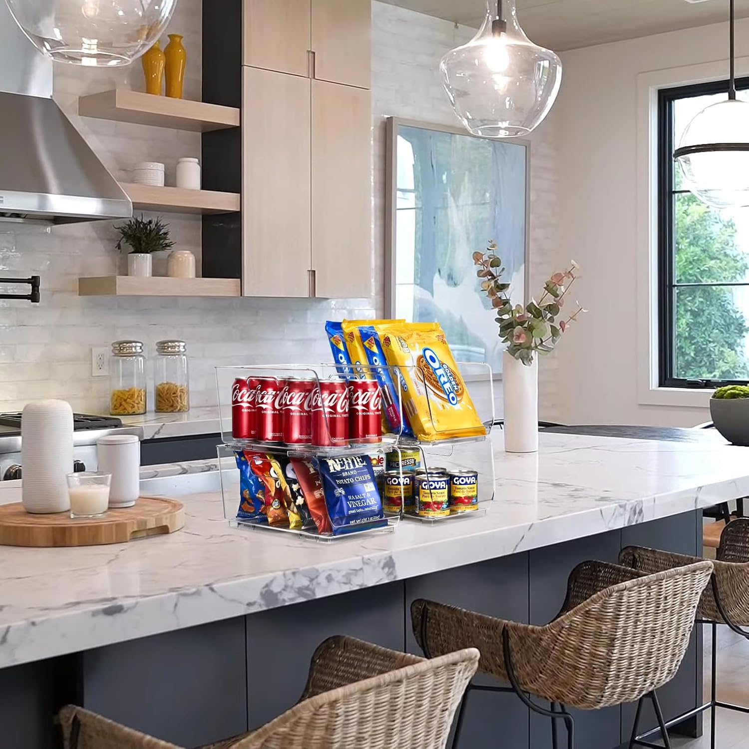 • Versatile Use: Great for storing fruits, veggies, packaged goods, yogurts, canned goods, drink boxes, baby food, condiments, cleaning supplies, bath products, makeup, and more. Versatile use as clear open front storage bins, stackable food storage bins, stackable kitchen storage, clear plastic bins for pantry, stackable cabinet storage bins, stackable bins for pantry, open bin storage basket, and stackable pantry bins
