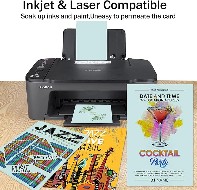 • Printer Friendly: Sturdy and versatile, our thick cover stock paper is compatible with most types of inkjet, laser printers and photocopy machines ; Please check your printer manually to be sure your printer can handle their size and weight
