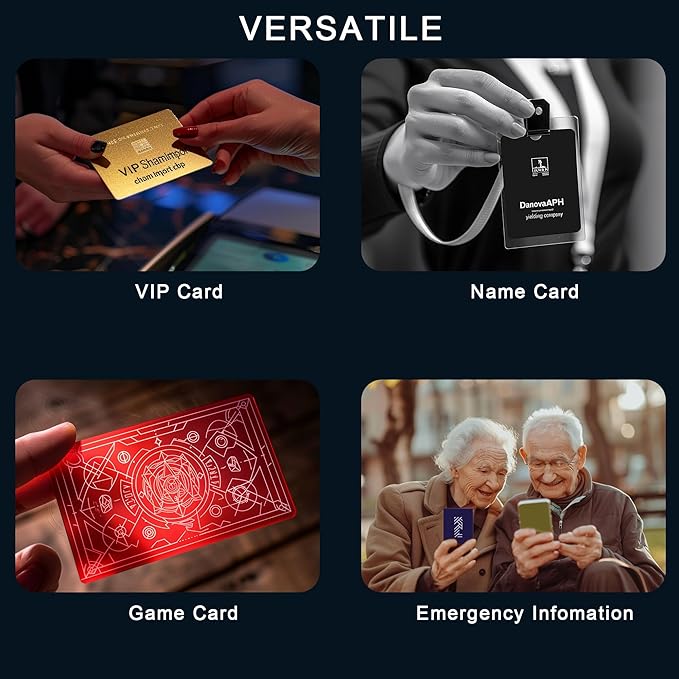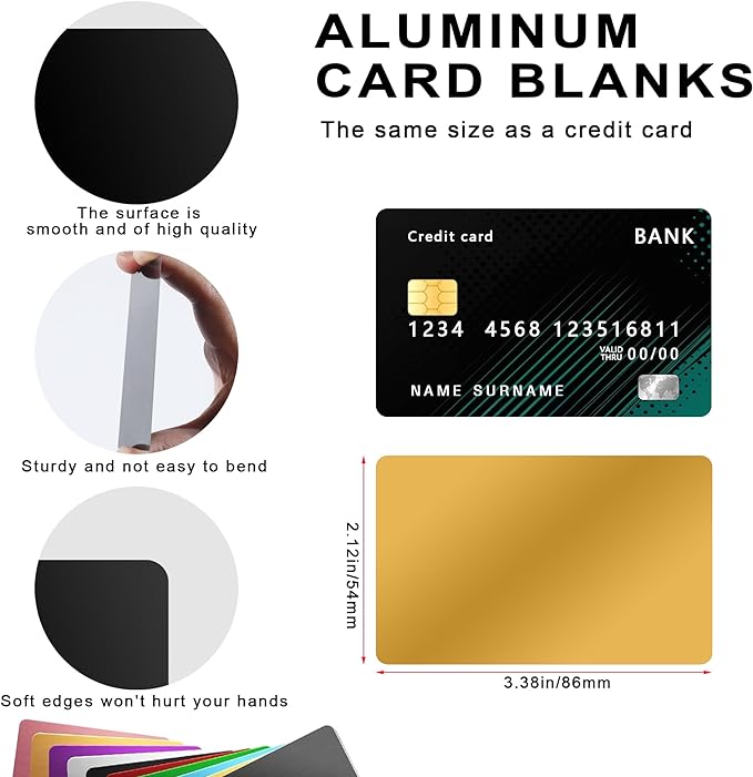 • 【Materials and sizes】These colorful metal business cards are elegantly designed with certain artistic connotations. The engraving won't fade or scratch easily, ensuring your creations maintain their beauty for a long time. Each name card is 3.4*2.2*0.01inch, which is similar in size to a bank card and can be easily put in a pocket or wallet