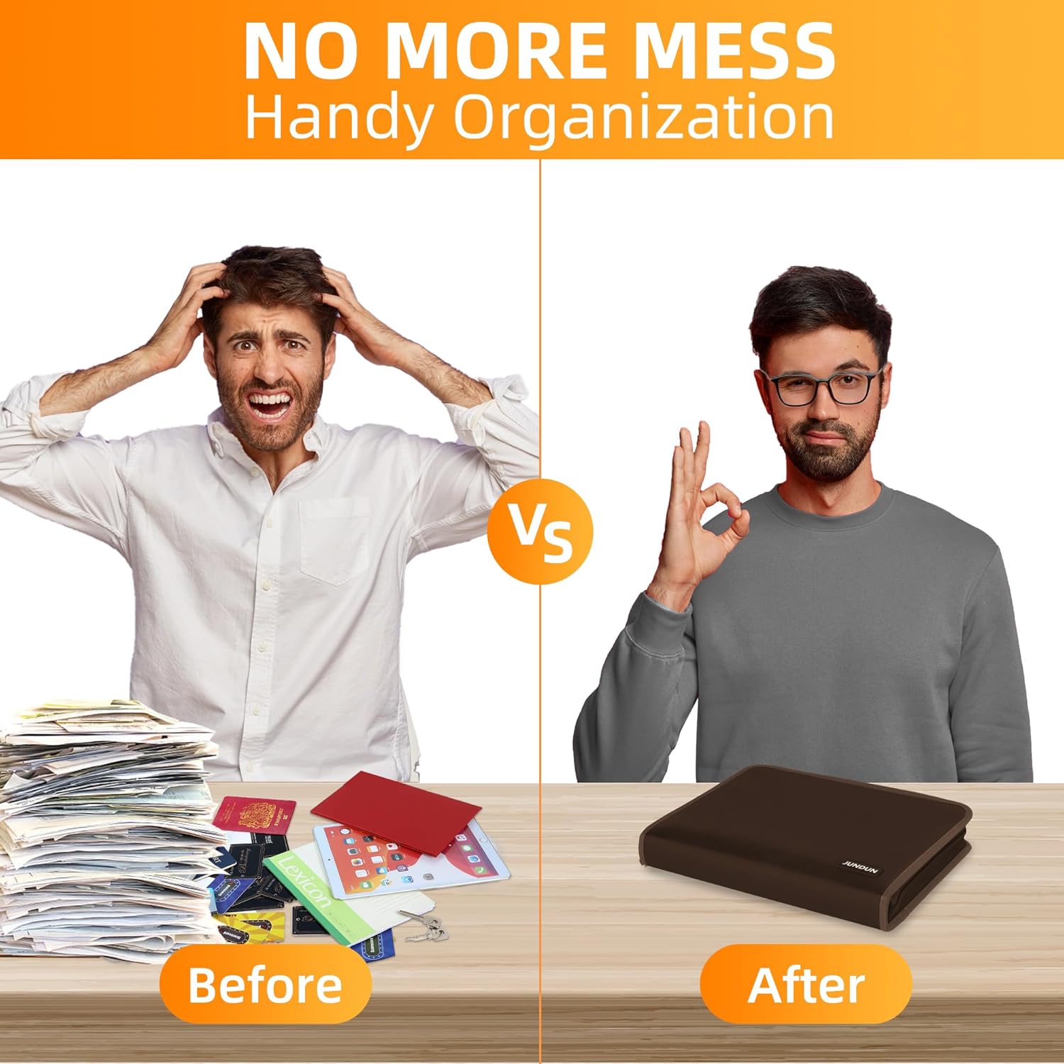 • PLENTY OF ROOM: Our Accordian File Organizer has 13 individual pockets,1 zipper pocket,1 pen slot,6 card slots,4 small mesh bags,4 medium mesh bags,and 1 main pocket,all in a compact size of 13.97"x10.43"x1.96".With ample space,you can securely store all your important documents and other items in this accordian folder while effectively classifying and finding your files