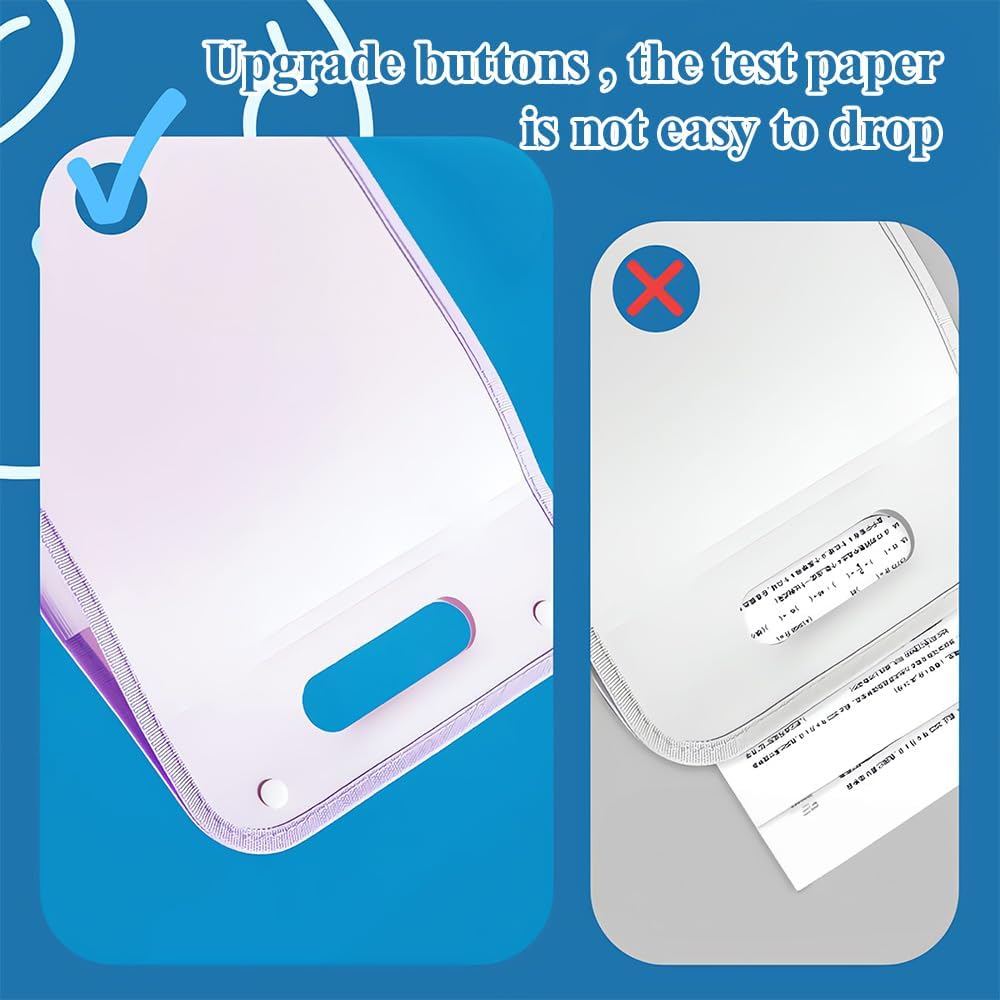 • MADE TO LAST: Made of durable and waterproof PP material, it can resist tearing and is not easy to deform. Double buttons on both sides are fixed to prevent files loss. The edge is rounded and wrapped to ensure the safety of use.