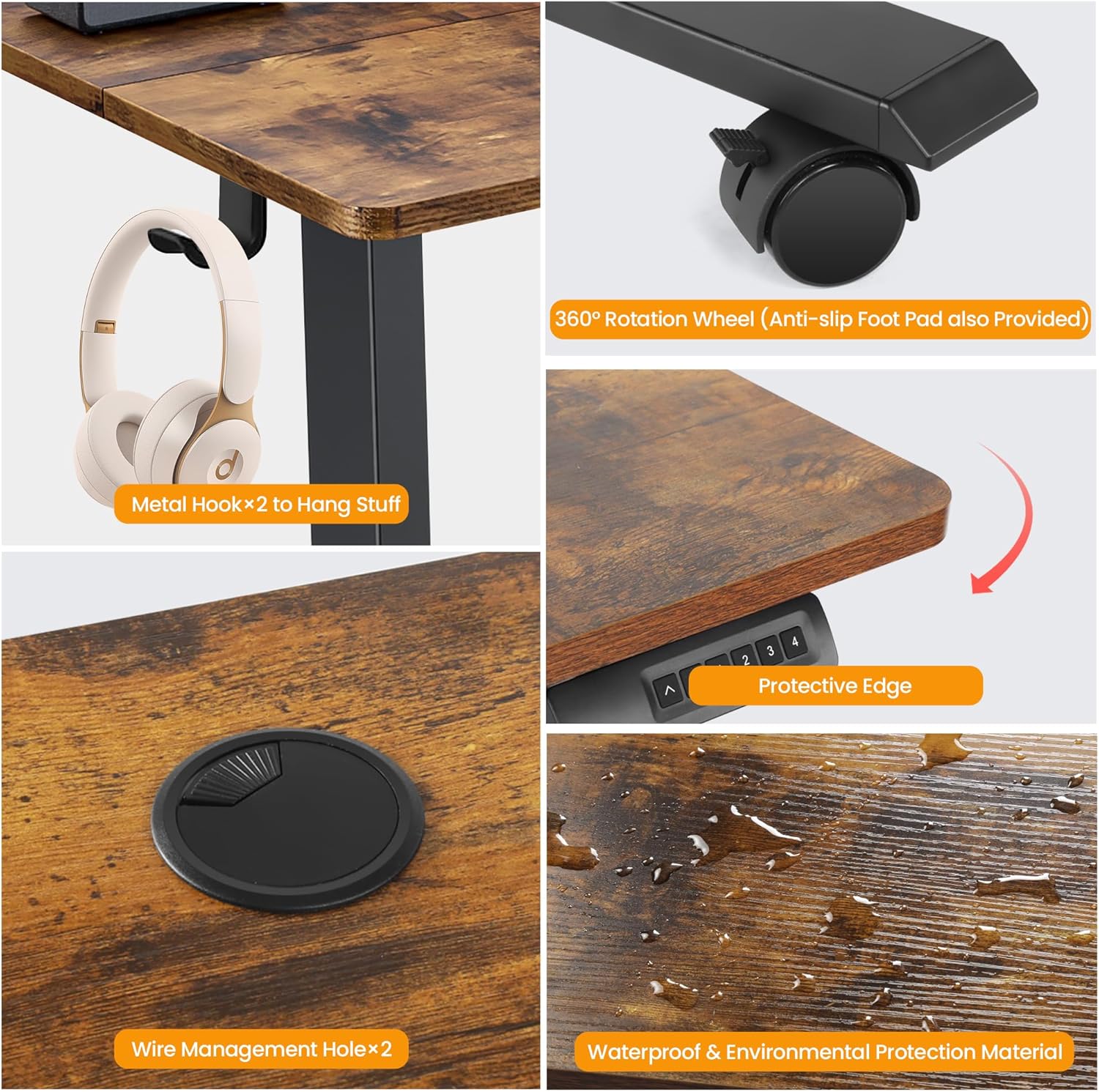 Himimi Electric Standing Desk 55 x 24 inch for Home Office,Sit-Stand Adjustable Desk with Memory Presets,Height Adjustable Desk for Gaming/Working,Free Hook, Lockable Wheels,Mouse Pad,Brown