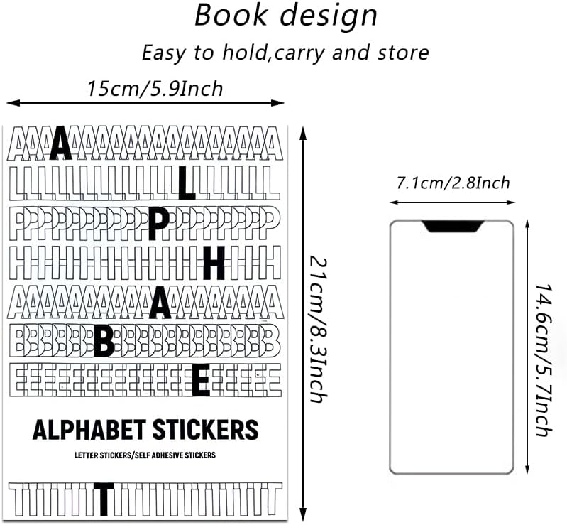 • Size and Quantity: Sheet size 21 x 15 cm/8.2x5.9 inch, 18 sheets capital letter stickers and 18 sheets lowercase letter and number stickers. Capital letter size 2.5cm/0.98 inch tall, four of each letter, total 936 pcs. Lowercase letters size 1-1.7 cm / 0.39-0.66 inch tall, 10 of each letter, total 2340 pcs. Numbers size 1.2 cm / 0.47 inch tall, 2 of each color, total 180 pcs.