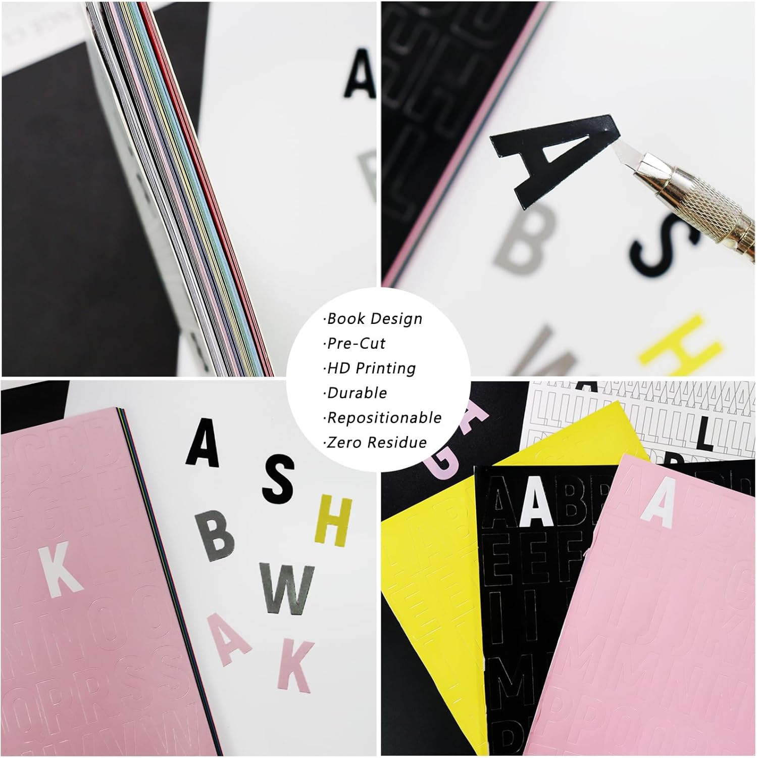 • Book Design and Colorful: In order to make our customer experience more convenient, we had these letter sheets binded and covered to a beautiful book which is easy to hold,carry and store. These alphabet stickers have 9 colors, they are silver,white,black,pink,dark blue,yellow,green,sky blue and red,you can add pops of color to your crafts, making them appealing to look at.