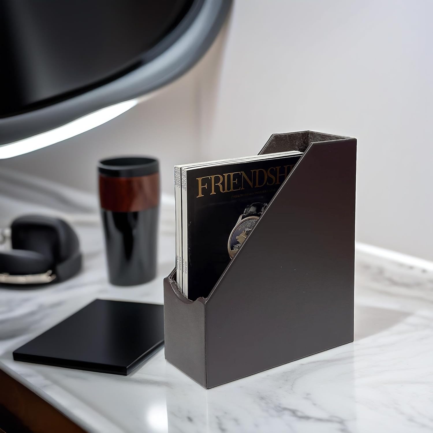 UnionBasic Magazine File Holder - Office Leatherette Desktop Document File Folder Journals Organizer Racks, Coffee